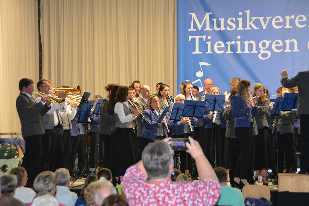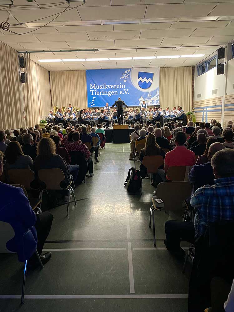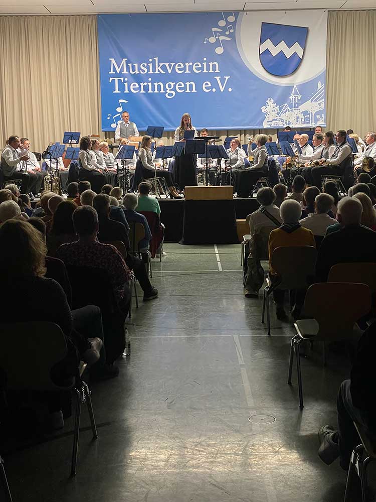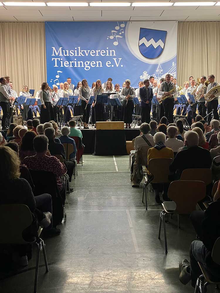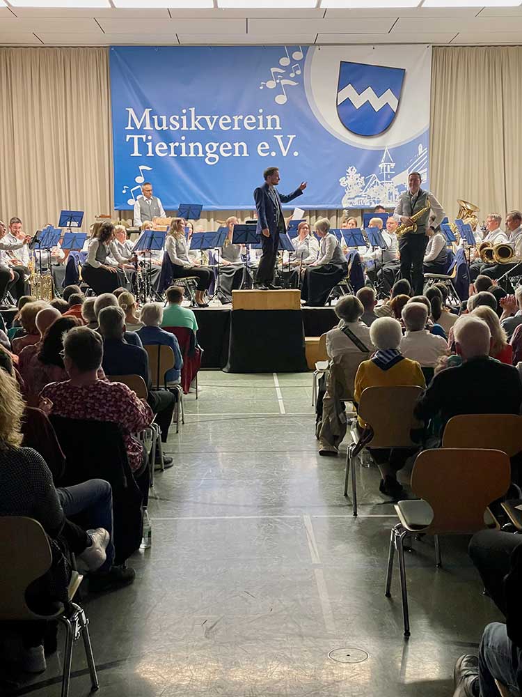Unter dem Motto „Mit Musik in den Frühling“ lud der Musikverein Tieringen am 13. April 2024 zu einem Doppelkonzert in die Schlichemhalle in Tieringen ein. In der dekorierten Festhalle konnte der Verein zahlreiche Besucher und Besucherinnen begrüßen.