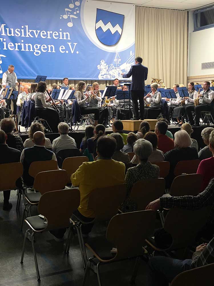 Nach einer kurzen Pause setzte die Aktivenkapelle des Musikvereins Tieringen unter der musikalischen Leitung von Oliver Herberger das Konzert fort. Mit dem ersten Stück „Eternal Promise“ von Naoya Wada eröffnete die Kapelle kraftvoll ihren Auftritt. Weiter ging es mit dem Medley „The Best of Oasis“, arrangiert von Palmino Pia. Mit dem bekannten Musical-Hit "The greatest Showman" glänzten die Musikerinnen und Musiker und zeigten ihr Können.