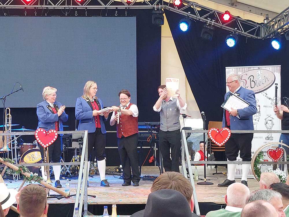 Christof Clesle und Andreas Link, 1. und 2. Vorstand, stellten sich bei der letzten Mitgliederversammlung im März 2024 nicht mehr zur Wiederwahl. Nach 16-jähriger Tätigkeit als 2. Vorstand im Verein wurde Andreas Link für seine langjährige Tätigkeit mit der Fördermedaille in Silber ausgezeichnet. Christof Clesle war von 2004 bis 2008 als 2. Vorstand und seit 2008 als 1. Vorstand im Verein tätig. Für seine 20-jährige Tätigkeit überreichte ihm Herr Hellstern die Fördermedaille in Gold. Vorsitzender Thorsten Hellstern würdigte unter dem Beifall der Musiker, Musikerinnen und des Publikums die Verdienste der beiden langjährigen Funktionäre, die dem Verein weiterhin erhalten bleiben.